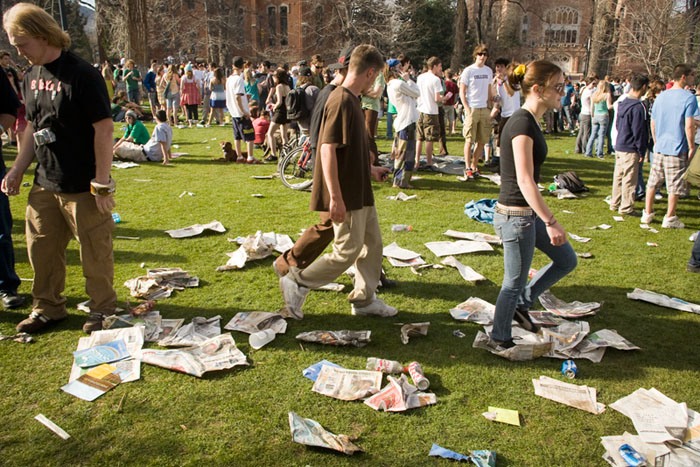 Public university campuses are wretched hives of scum and villainy, where everyone is so concerned with being “different” that they all end up looking and acting the same way – cheap beer, marijuana, parties, text-messaging, “hooking up”, and talking about things of absolute insignificance.