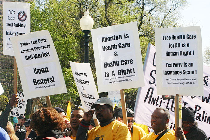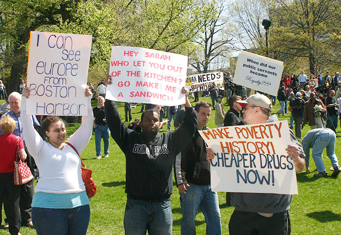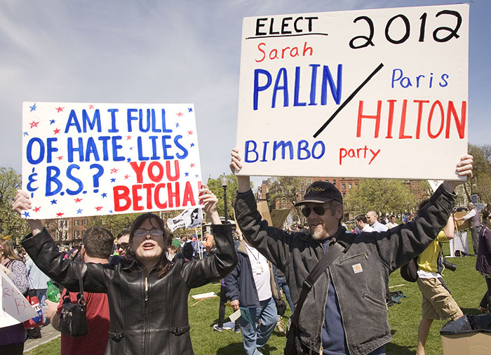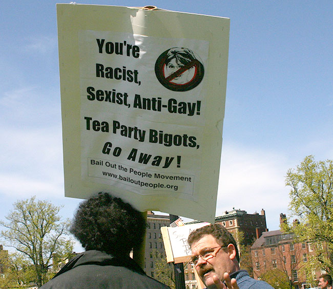 On April 14th, Sarah Palin addressed the 5,000 strong Tea Party rally in Boston. Also present was a second crowd of about 150 leftists. They did not come to hear Sarah Palin, but to denounce her and the Tea Partyers as racists and sexists. They came to “crash the Tea Party” and scream out their collective maladies in front of a large press contingent eager for a negative story line.