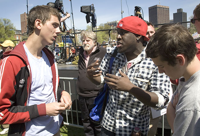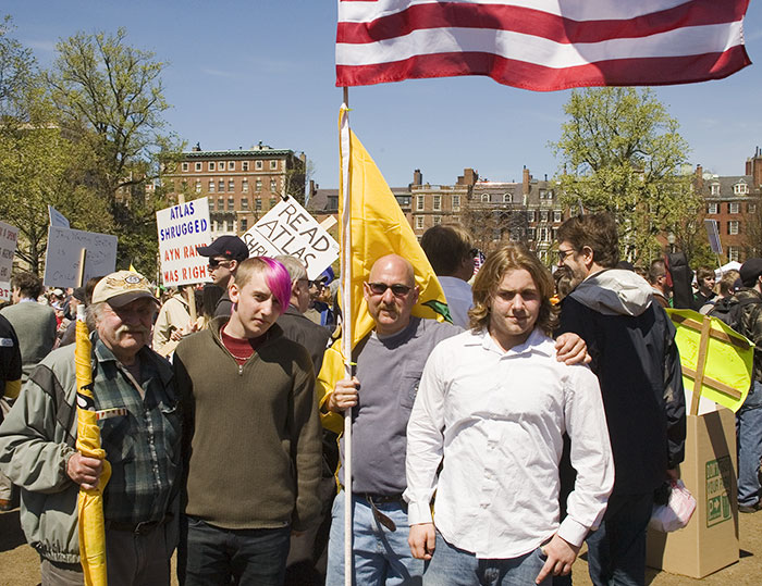 I’m afraid I missed a lot in Boston. Jet-lag (left Colorado home 4am) and a press pass meant I stayed near the stage until Palin arrived. A friend took most of the shots of the crashers. I should have spent my time with the crashers too. This is the first post I have done that includes photos not my own. Lucky I had help or I would have missed out. Palin is such a good subject I was totally distracted and missed the action. Whoops. Lesson learned? After the rally we drove with a friend 9 hrs to DC (through Manhattan) for the Tax Day Revolt. Tea party people are always cool and collected. Imagine that! A popular movement made up of mature, productive adults. Only in America.