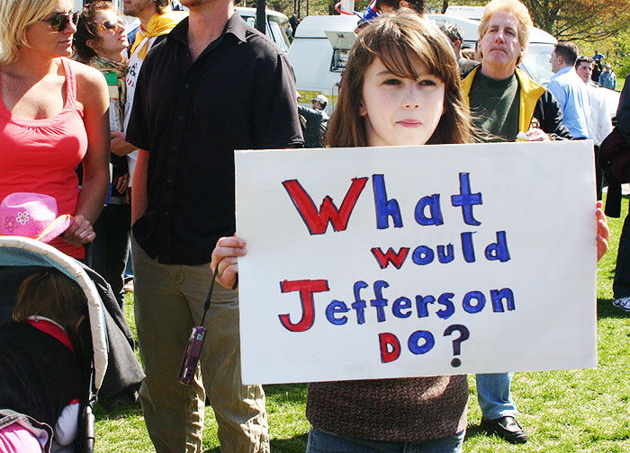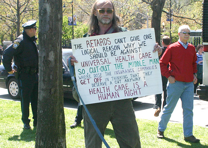 This sign sums up the general tone expressed by the Tea Party crashers. To my eye the crashers fit into 3 group-types.