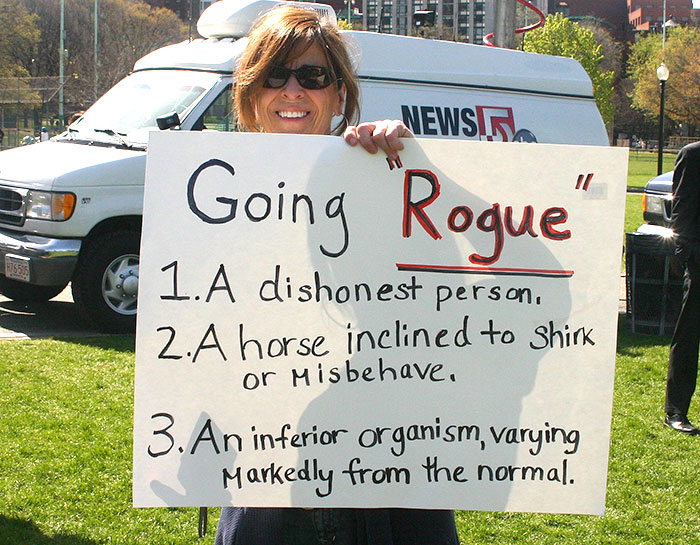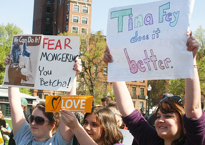 Fear and hatred of Sarah Palin – Palinphobia – has taken the place of Bush Derangement Syndrome as the neurotic focus for the American left. Incited by more than a year of coordinated administration/MSM hate propaganda, Tea Party crashers’ signs were only a reflection of the Democrat party’s agitprop. The level of hatred shown towards Palin in Boston rivals that shown to Ronald Reagan or George W Bush during their presidencies.
