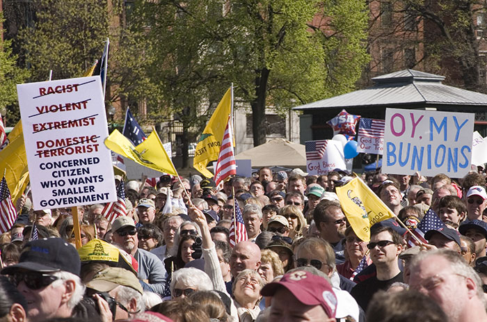 I’ve been to a few Tea Party events in Boston, and I’m impressed by how civil our folks are. We’re really not very good at chanting slogans we just tend to stand around and chat about politics and current events.