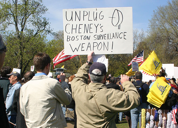 Leftists can be seen gathered around the monument on the knoll at the left in this photograph. They mixed with the Tea Party down the Boston Commons slope, and harassed and infiltrated the back of the main crowd. Many of the signs seen ringing the crowd are “crasher” signs. Tea Party patriots moved to cover the rally’s rear and flanks with their own signs to counter the leftist signs.