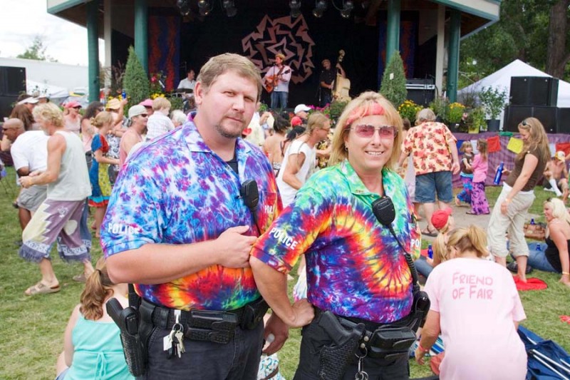 The fair is a sort of miniature scale model Woodstock. Baby boomers and their progeny need close supervision. Law enforcement officers pose in front of a small horde of boomers at the Elaine Benis dance-alike contest. Have you ever wondered how the 1960’s ruined popular dance in America? I’ll bet ya Fred and Ginger wouldn’t have become famous if they had misspent their formative years watching the walls crawl and listening to Led Zeppelin.