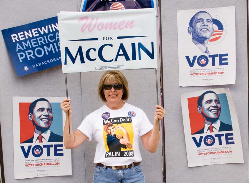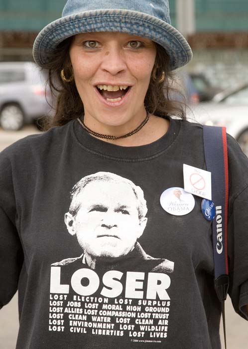 I asked this lone McCain supporter to pose in front of one of the Obamessiah displays set up on the street corners. “I was driving by and saw them, and I thought ‘heck with that’ and I went home and got my sign. When I first started, they kept telling me that I wasn’t allowed to be here. I told them it’s still a free country and that I had every right to be there. I just ignored them and after a while they left me alone.”