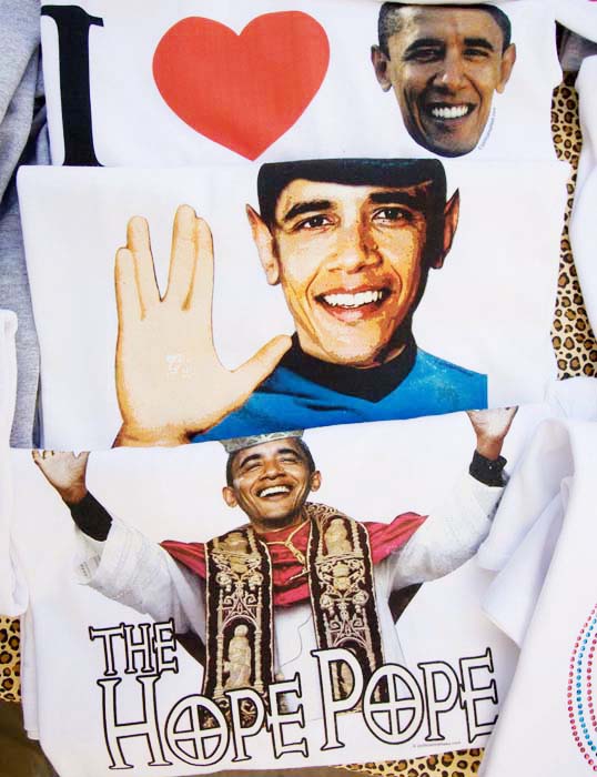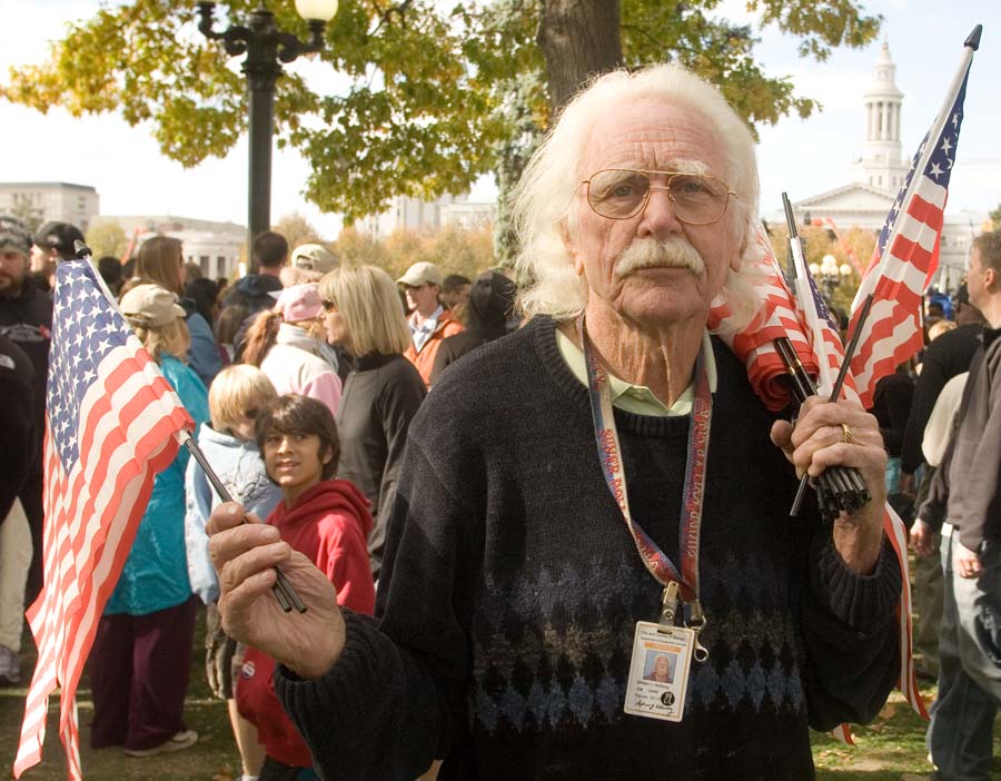 After the Invesco Field flag fiasco, Obama’s Denver rally in October left the flag business to this one solitary vendor. At $3.00 each, capitalist self interest will ensure that none of these flags end up in the garbage.