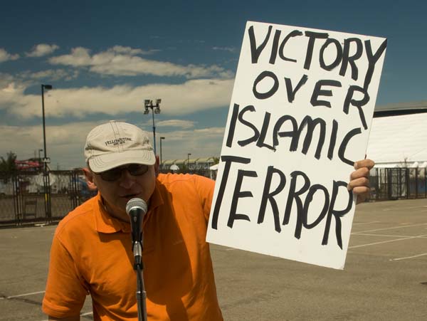 I turned, and shot this photo over my shoulder. I walked directly to a group of bicycle riot cops and explained that the moonbats were after me. Two bike cops escorted me to my vehicle, and Red and I returned to Denver Civic Center. I’m not as tough as Michelle Malkin.